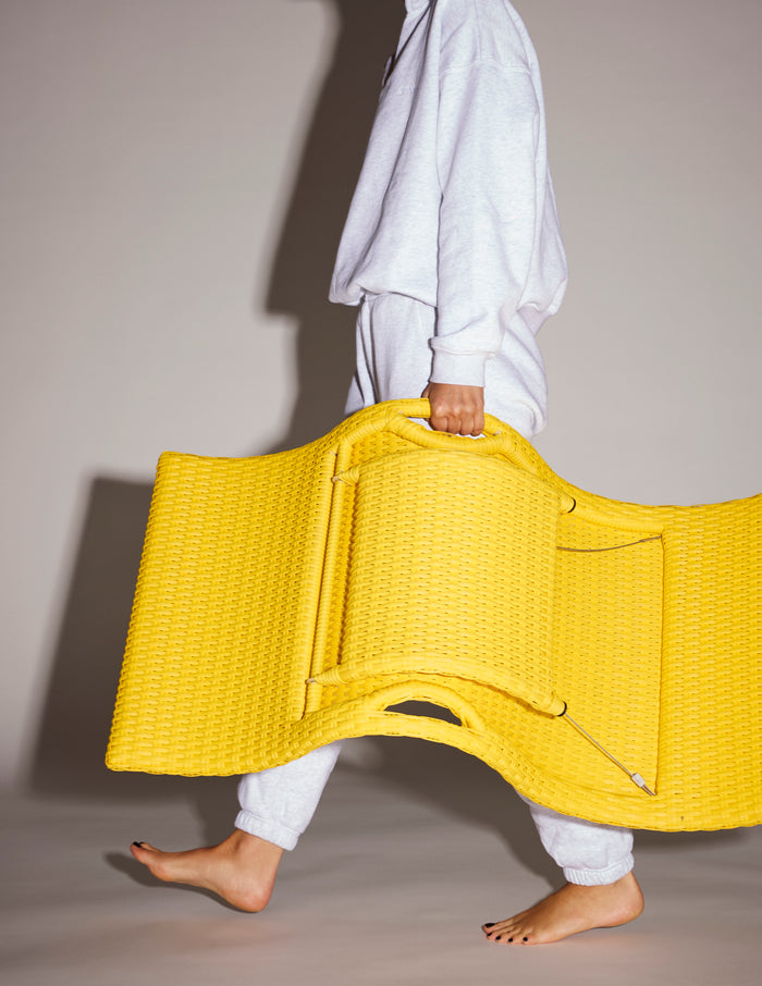 A sun chair by ordinary terms intended as much for the beach as it is for the backyard, summer homes, and events. The Sloth Chair integrates many unique features into its unconventional design; the foldaway rear legs seamlessly hug the S-shaped curve of the chair allowing itself to be stacked away for easy storage, and an integrated built-in handle allowing for easy carry. Through this innovative, body hugging design, the days of bumping your legs into your sun chair in transit are long behind.