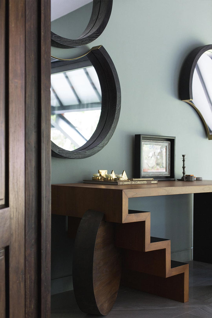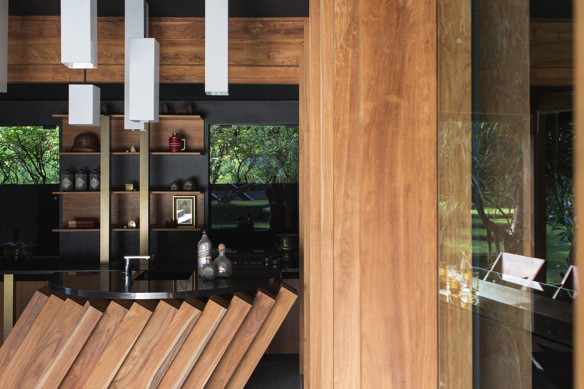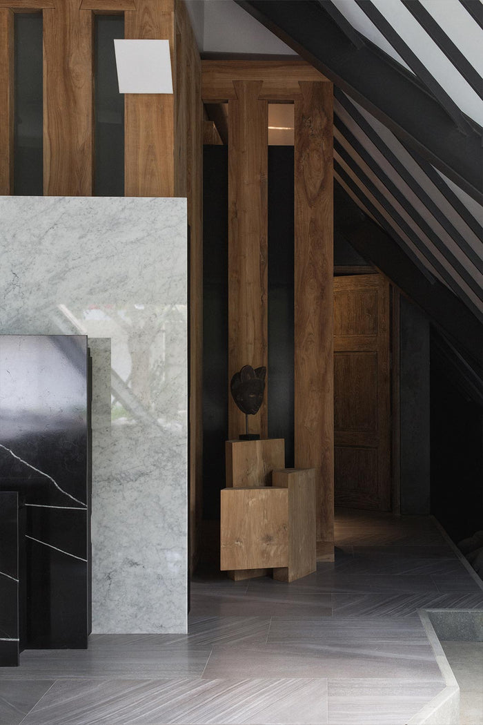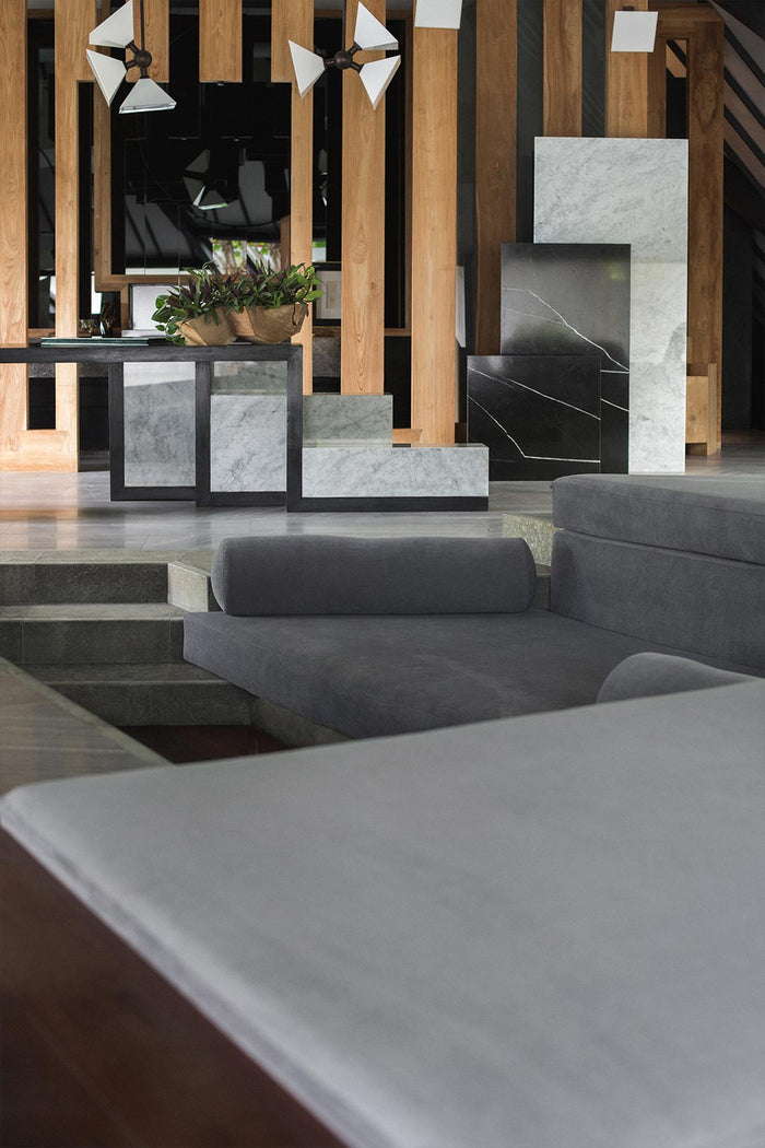 The Main house developed as the central structure of an architectural compound created entirely by Maximilian Eicke. Seen as a no holds bard part of the project - integrating the designers favorite materials as a form to create on monumental sculpture. Solid Steel, Solid Wood and Solid Stone used throughout the house merge perfectly in creating an environment that while looking monumental creates an incredibly interactive and welcoming residential experience.