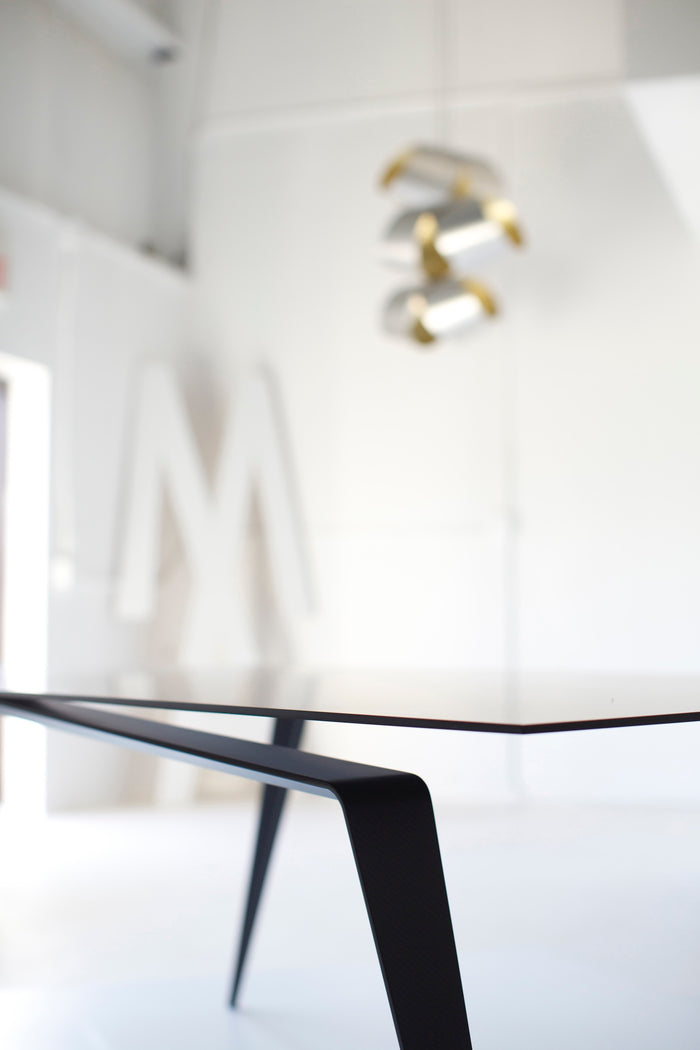 Creating this table in 2012 - 2 years into the founding of design brand Max ID NY, challenged what designer Maximilian Eicke understood about design and specifically carbon fiber itself. Designed as a challenge to create an object that took advantage of the materials strengths and properties in addition to showcasing the manufacturer's construction ability and quality. The table is very much inspired by movement due to carbon fiber being a material usually seen in the racecar and aeronautic industry. This philosophy of movement turned into creating a table that is ready to run away or pounce, which is where its name “panther” originated from. The table disassembles to flatpack away, using a mix of materials such as Kevlar, titanium and carbon fiber.