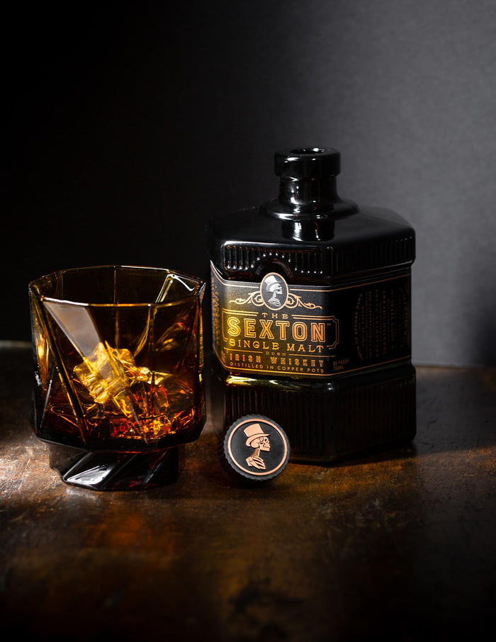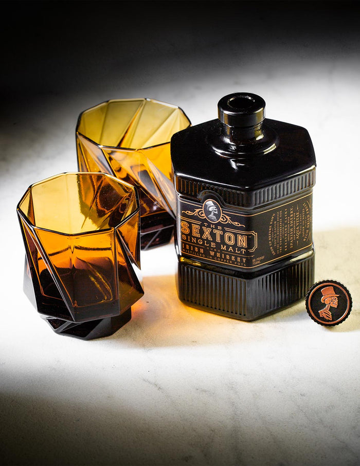 Proud to work with our first alcohol brand on a collaboration between The Sexton Single Malt and MAX ID NY. Max ID NY developed a custom color of its iconic Ghost Tumblers Taking cues from the rich hues of the whiskey. As a result Maximilian developed a special, dark amber version of his highly sought-after ghost tumbler sets.